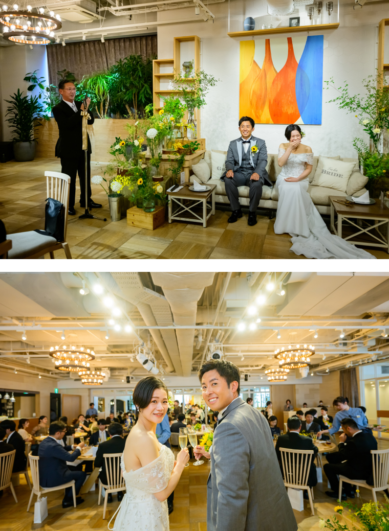 「これから始まる披露宴を思いきり楽しもう」——そんな想いが伝わるメッセージに、ゲストの笑顔があふれました。