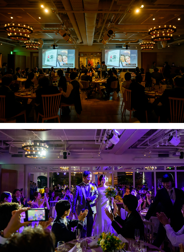 会場の灯りが落ち、スクリーンに映し出されるのは、おふたりの思い出をつづったオープニングムービー。