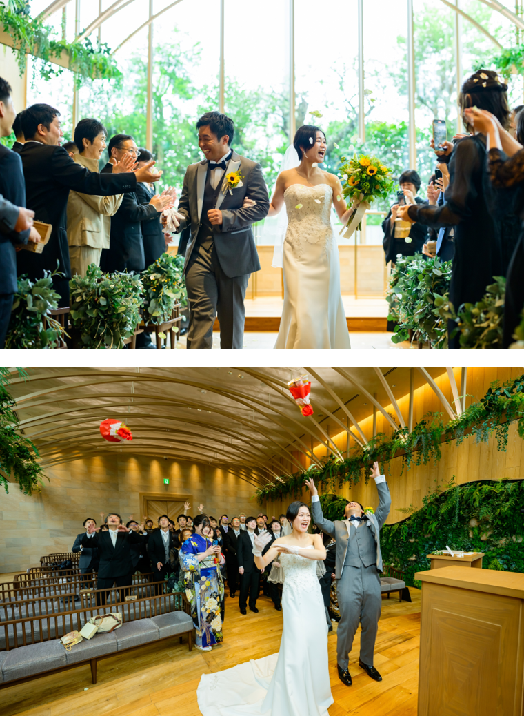 そしておふたりは、家族やゲストの祝福を受けながら退場。