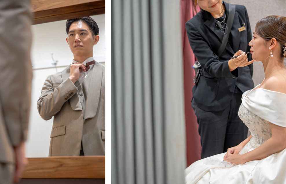 「人を選んで創る」というクリエイターズウエディングの想いに共感し、準備を進めてきたおふたり。お互いを思いやりながら過ごす姿からは、これまでの歩みと“今日を大切に楽しみたい”という想いが伝わります。