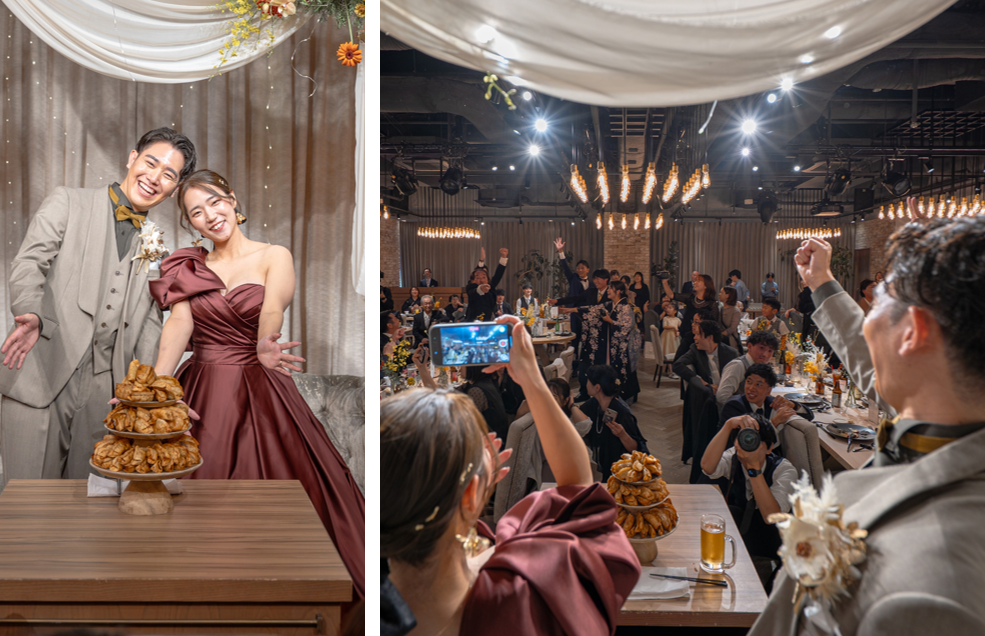 お色直しの後は大きな歓声とともに登場したのは“餃子タワー”。