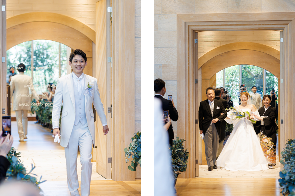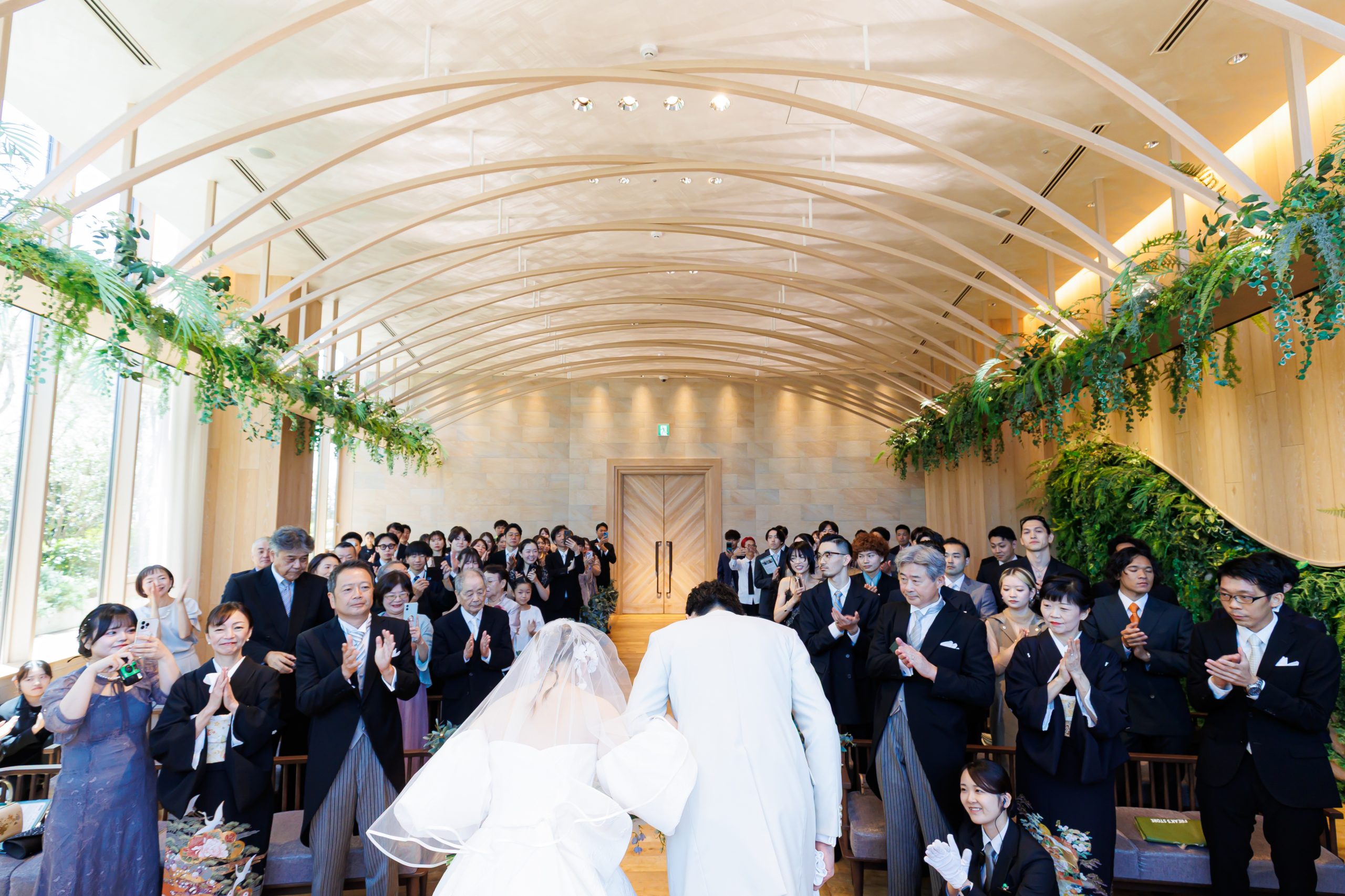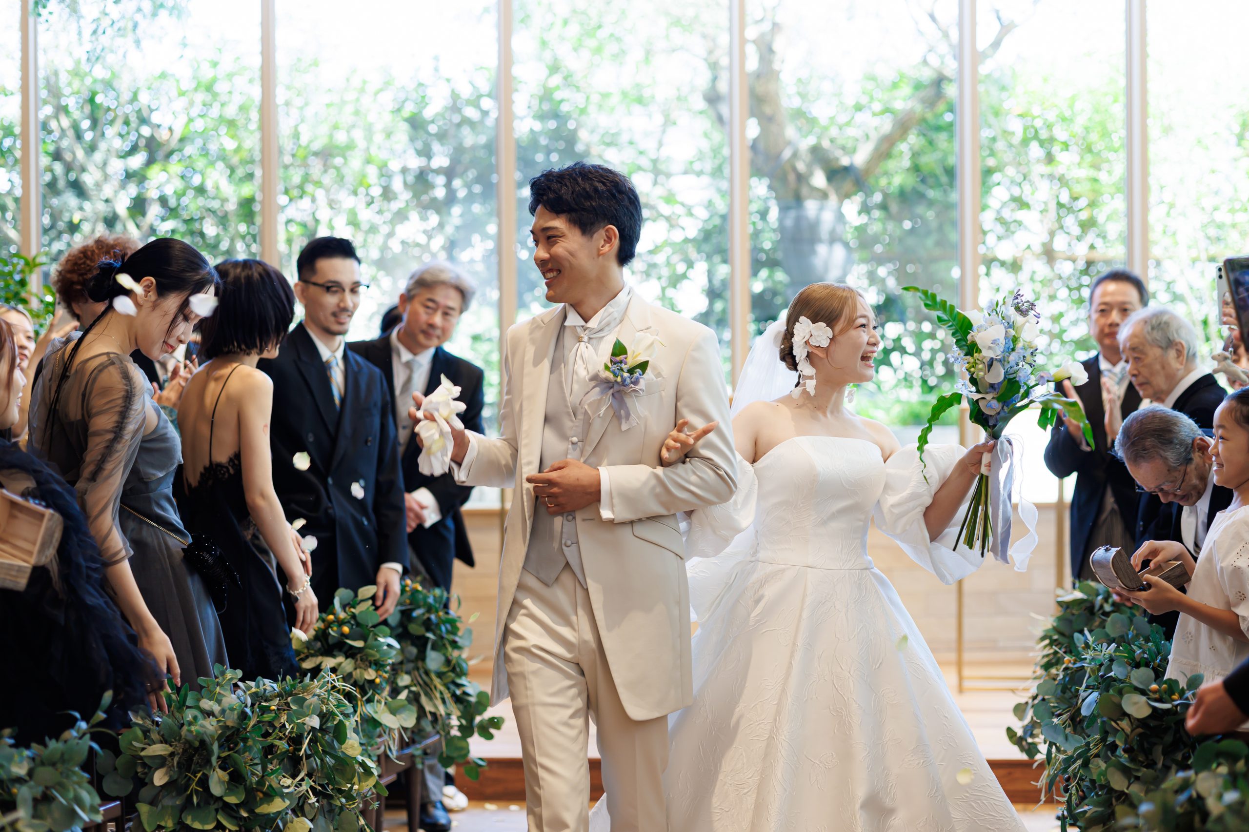 最後は笑顔でチャペルを退場。新しい物語のはじまりを感じる、心温まるシーンとなりました。