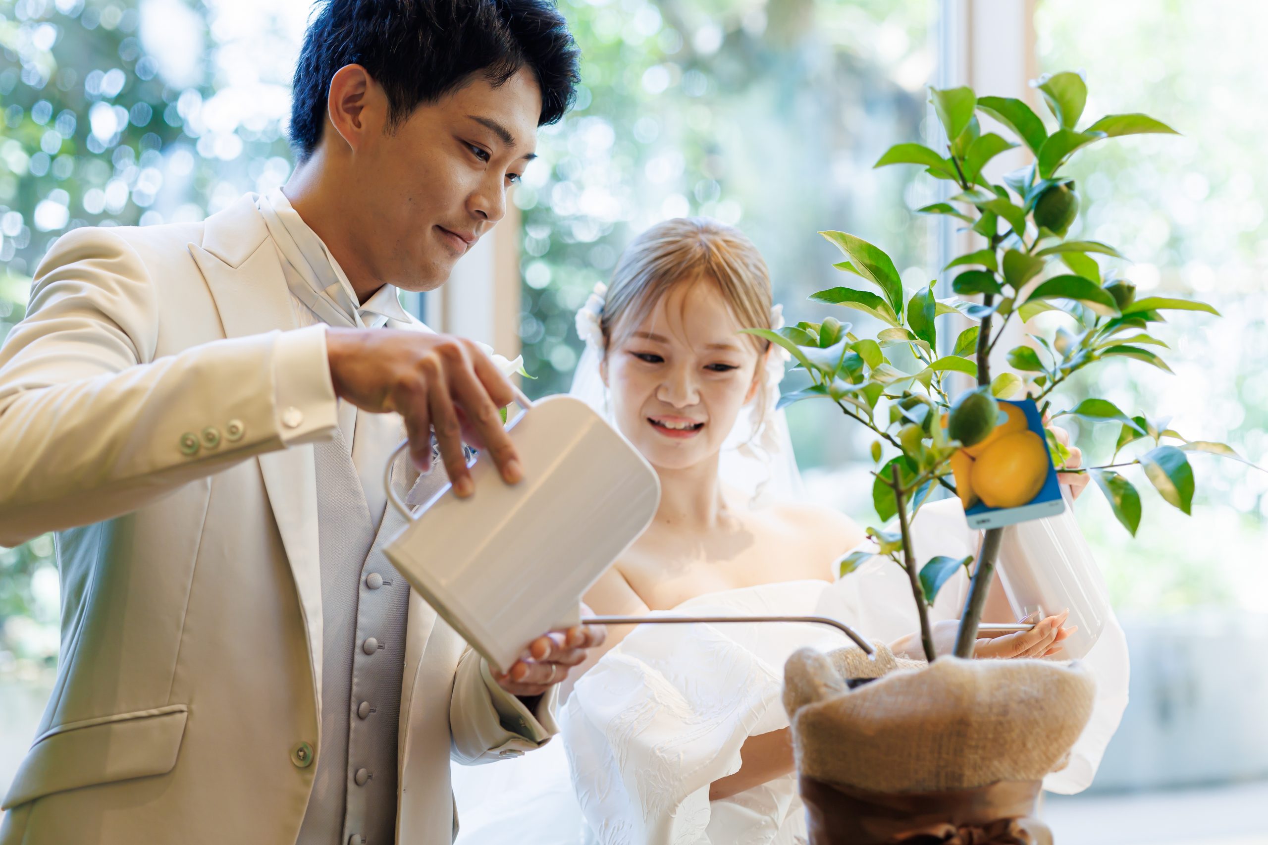 その後、おふたりが水を灌ぎ、ゲストと共に完成させたこの木が新しい人生の象徴となりました。
