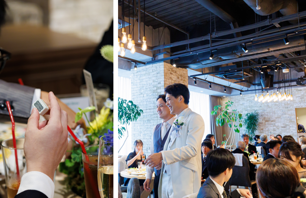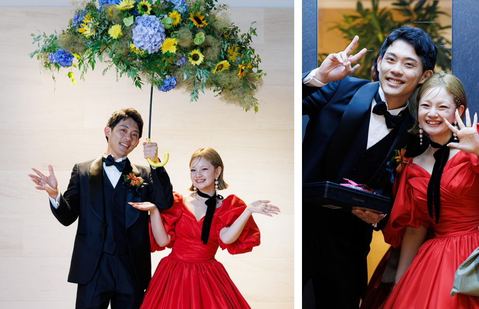 遊び心あふれる進行とディテールには、おふたりのセンスとこだわりが散りばめられています。