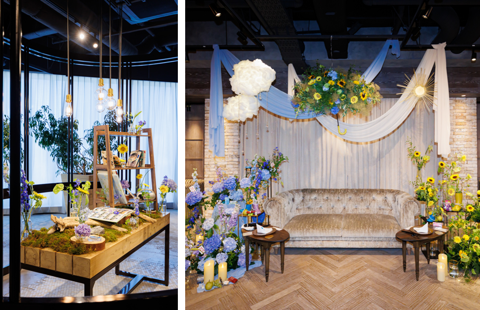 【Point 03】──“好き”で彩る、あじさいとひまわりの装花