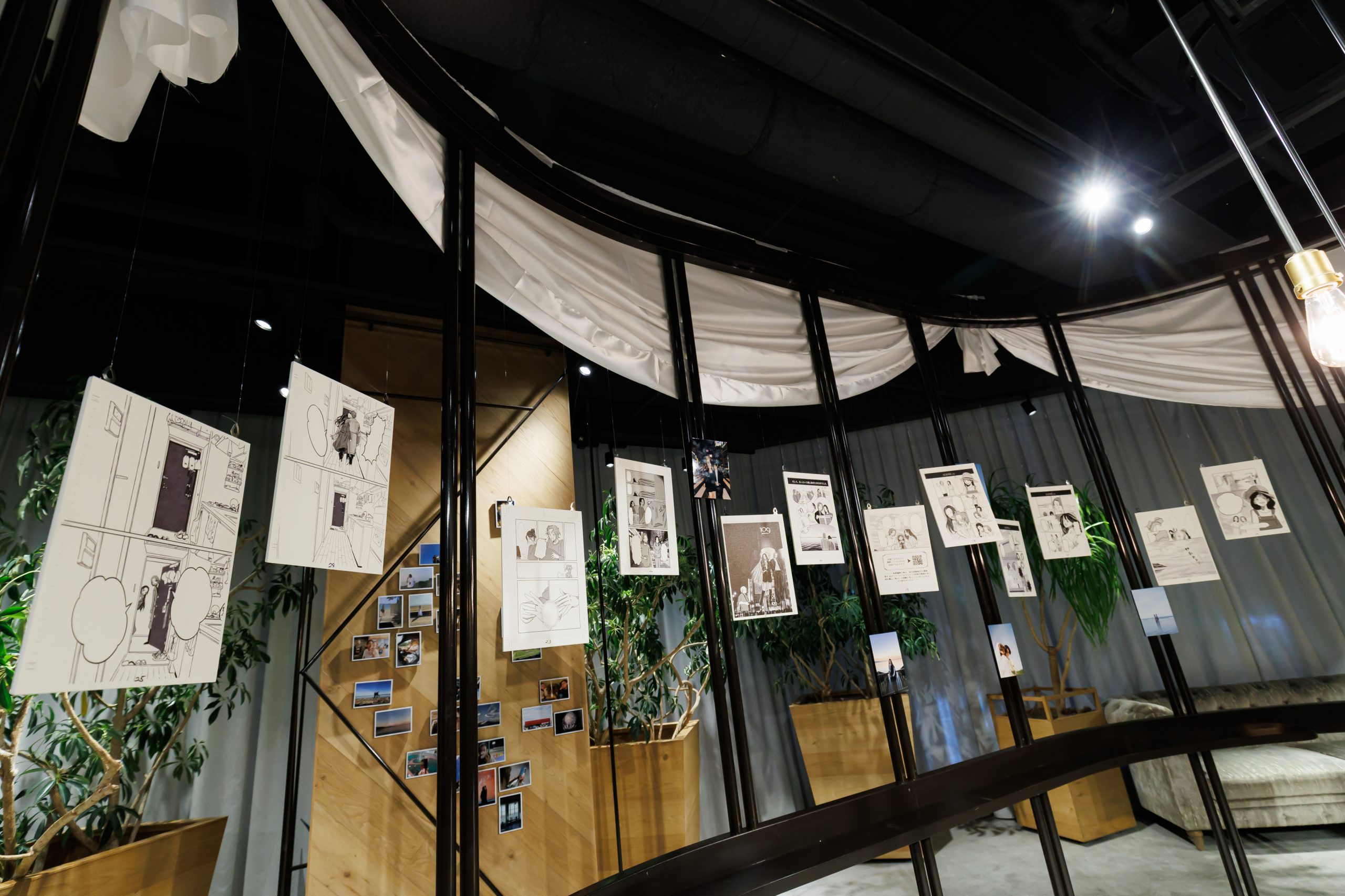 ホワイエにはご新郎様が手がけたオリジナル漫画を展示。実はこの漫画、披露宴で上映されるプロフィールムービーと連動したストーリー構成に。ゲストは待ち時間に物語の世界観に触れ、その続きを映像で体験するという仕掛けに。