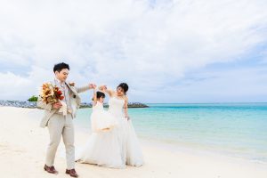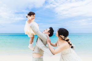 沖縄だからこその透き通ったビーチでの撮影ができるので