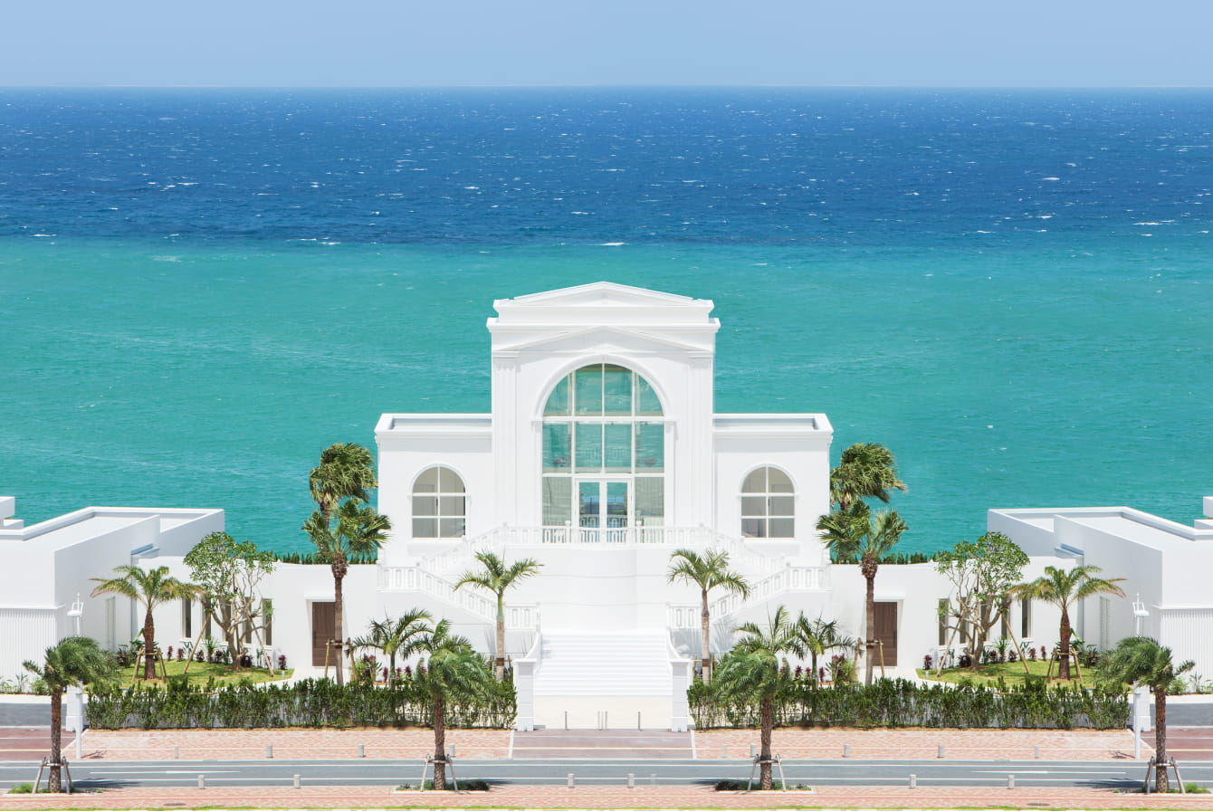 白亜のチャペルと無限に広がる青空・海のコントラストが、おふたりの挙式をより鮮やかに。