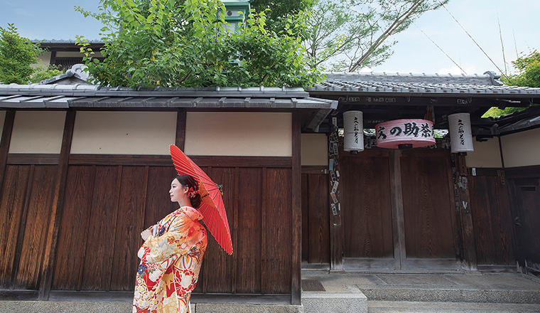 歴史が薫る東山の周囲には、京都を代表する神社・仏閣がたくさん。本物ならではの空気の中で挙式を行いましょう。お仕度やご移動もお任せください。