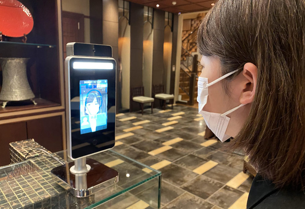 画面を操作することなく、瞬時に顔認証を行い、検温スクリーニングが可能でございます。