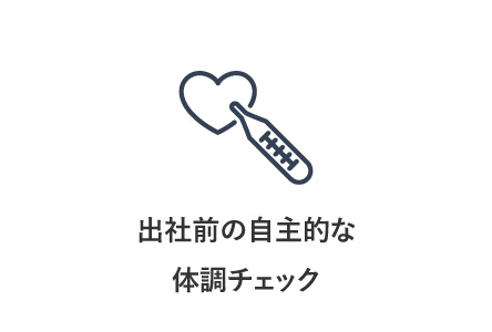 出社する全てのスタッフに対し、アルコール消毒、並びに出社前の自主的な体調チェックを実施しております。