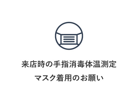 お客様の安全及び公衆衛生を考慮し、こまめな手指消毒や可能な限りマスク着用をお願いいたします。