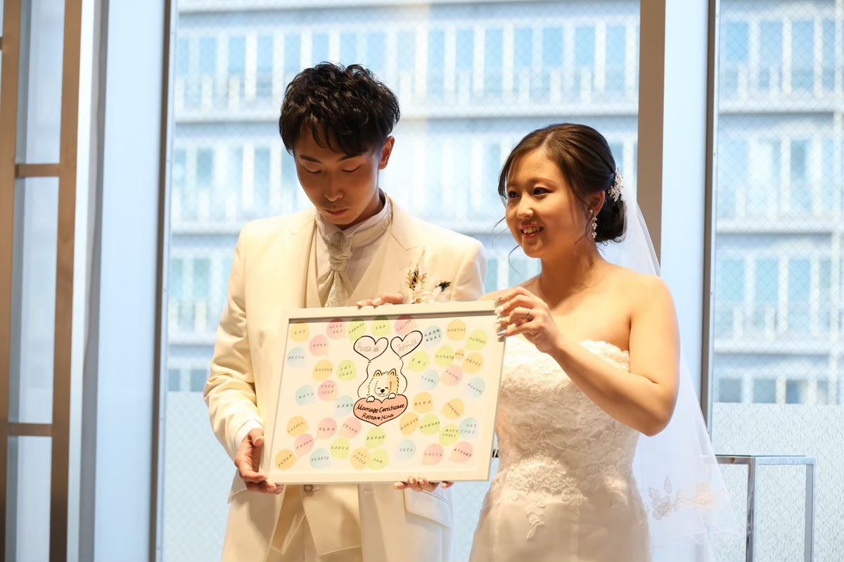 結婚式でやりたいことを全て詰め込んだ1日を叶えられたのは、担当プランナーさんをはじめとするスタッフ皆さんのサポートがあったからこそだと思います。当日まで安心してお任せすることができ、感謝の気持ちでいっぱいです。年内最後の施行だったため、式の最後に皆さんと記念撮影を行えたことも、一生の思い出になりました。