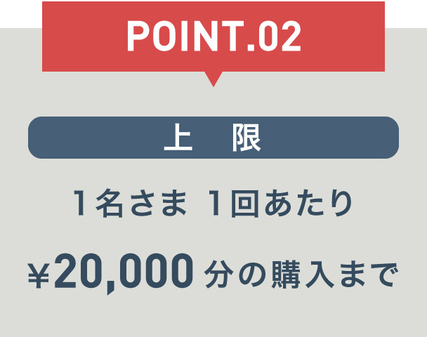 • 購入制限は、1 人1 回あたり¥20,000 分の購入まで。 お釣りは出ません。
