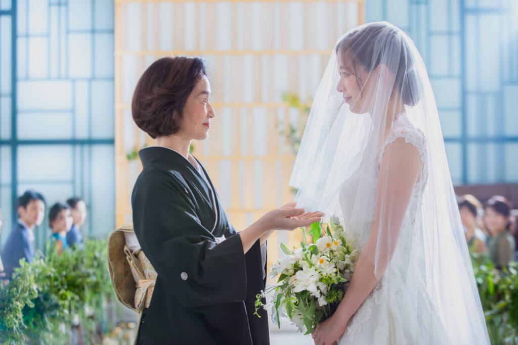 挙式が始まる前に母親がベールをおろすベールダウンの儀式は、新郎の元へと送り出す前に母親が娘にできる最後の仕事。親が子を想う気持ちがつまった感動のセレモニーです。