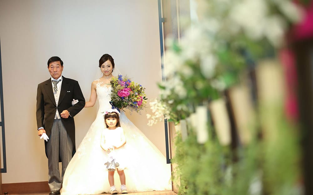 美しい新婦の入場には可愛らしいフラワーガールもお手伝いしてくれました。