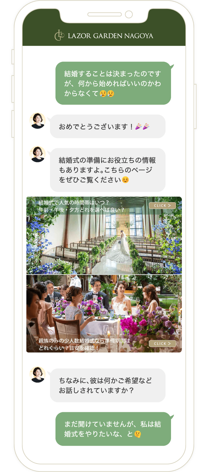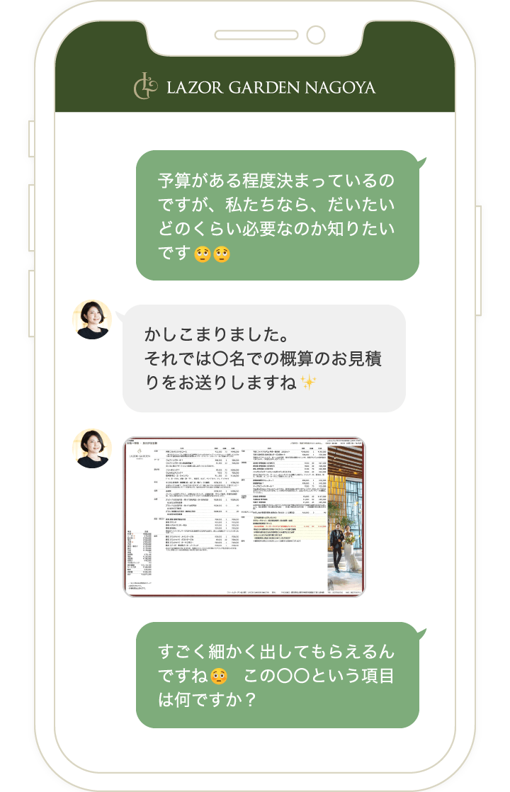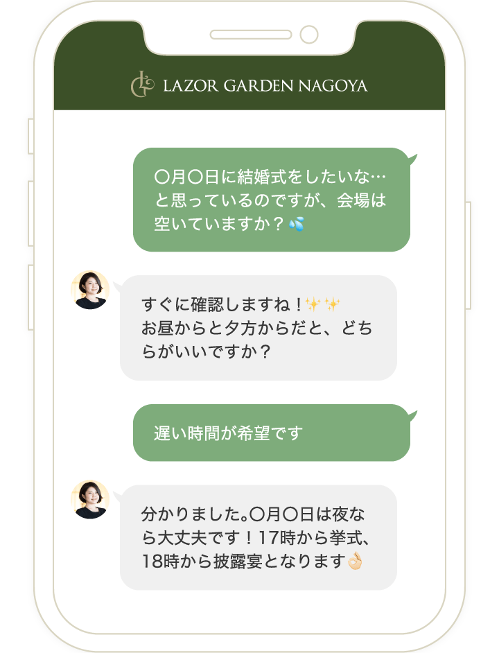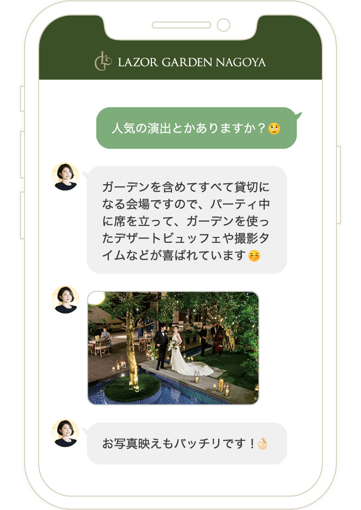 LINEで友達登録をしていただき、会場でご成約をされたお客様にはその場で「10万円OFF」!ご成約をされなくても、しっかり役立つ結婚式情報をお届けします。