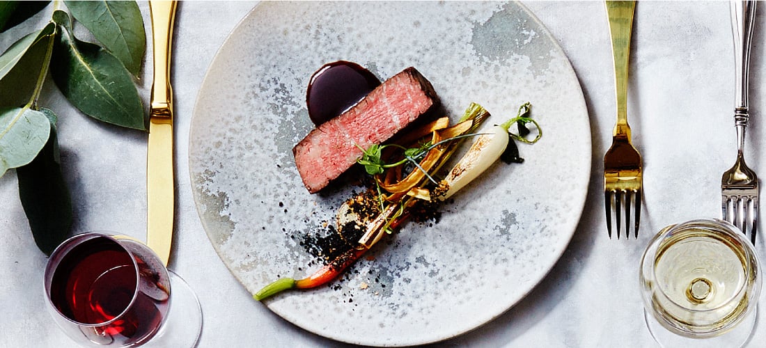 フレンチをベースに、和洋中の調理法を大胆に取り入れたフュージョン料理は、一皿ごとに心浮き立つような魅力でいっぱいです。名古屋中心部ながら、緑あふれる心地よいダイニングでお楽しみください。