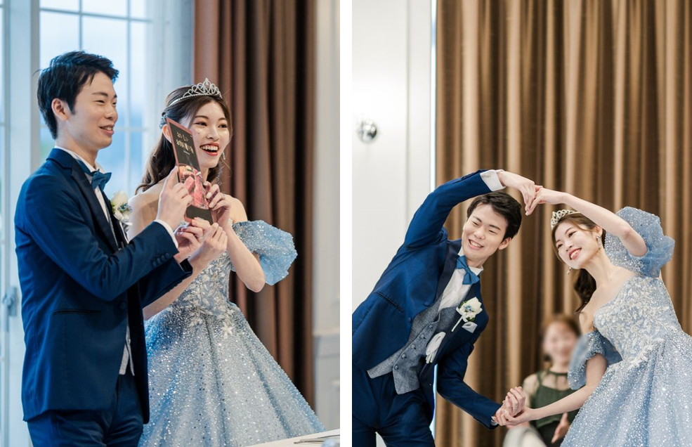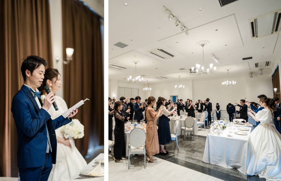 披露宴では余興で一緒に踊る友人からのサプライズがあり、友人だけで踊る予定だった場面で、他の友人からのメッセージを集めた動画を流してくれました。まさかのサプライズに泣いてしまい、その後自分も踊ったため、泣き笑いしながらのダンスになりました。