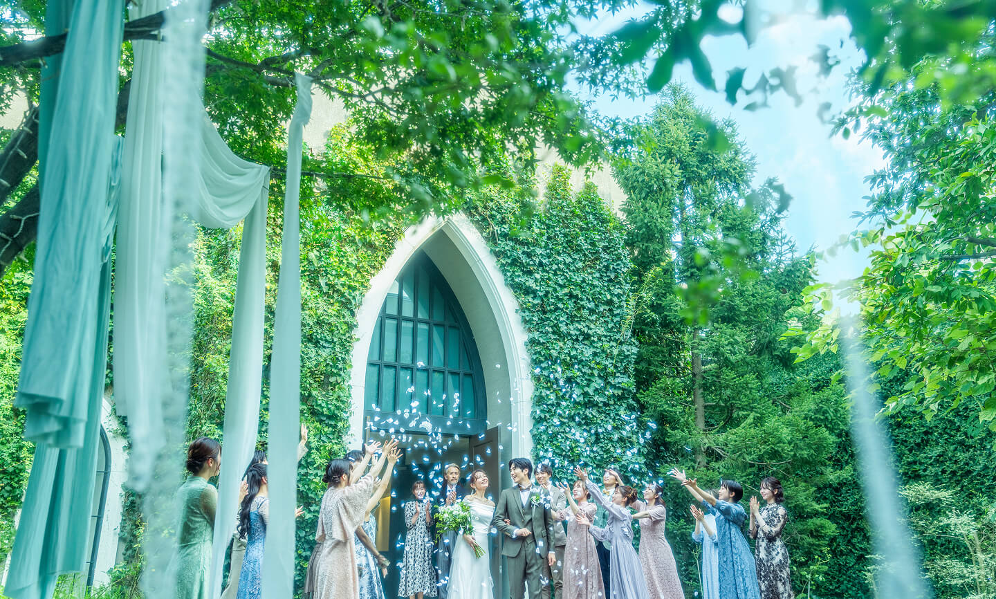 ゲストの笑顔に包まれながら、集合写真やブーケトスなどのアフターセレモニーも。ゲストとのあたたかなふれあいのひとときをこの場所で。