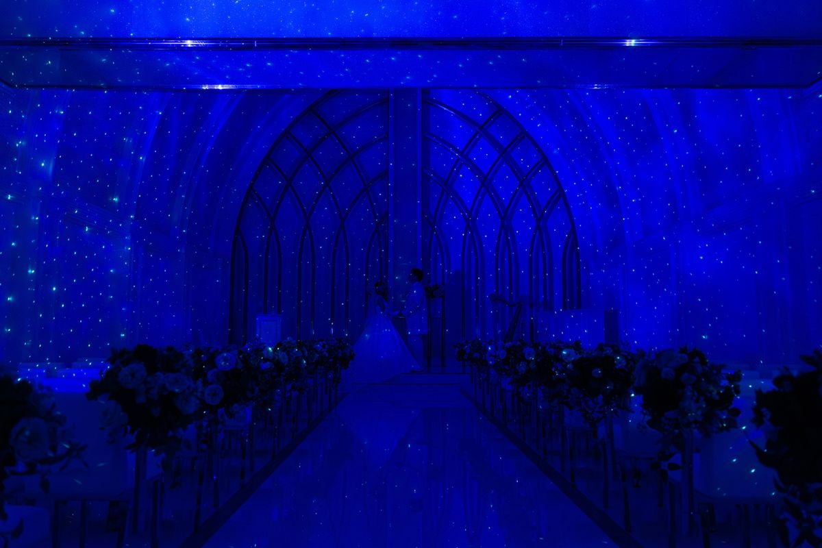 挙式について、特に気に入っているポイントが2つあります。1つは、式場の決め手でもある「スターライト演出」です。挙式中に会場が暗くなり、星空が浮かび上がる幻想的でとても素敵な演出です。この演出をどうしても取り入れたかったため、こちらで式をお願いすることにしました。