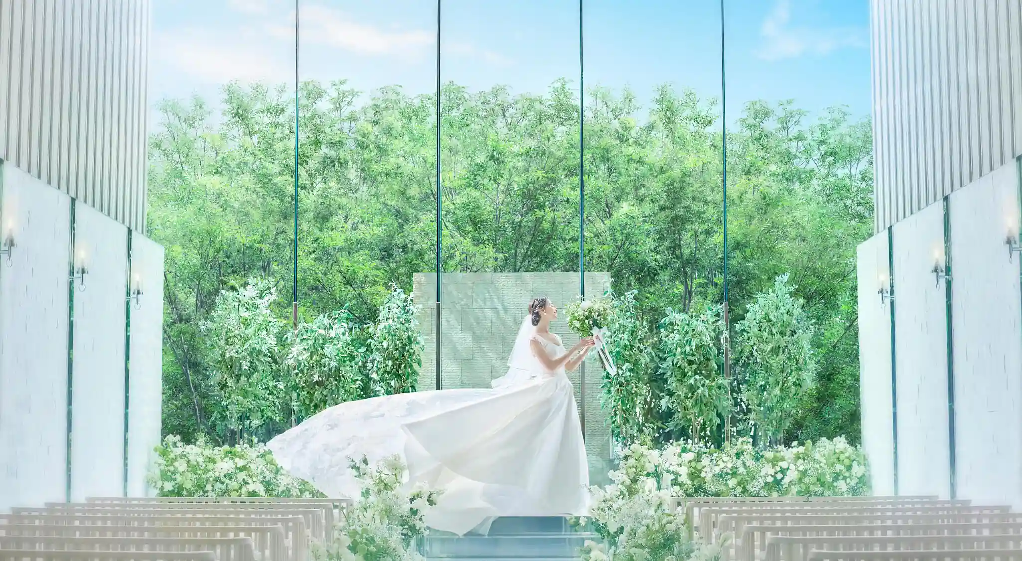 自然光が降り注ぐ緑に満ちたチャペルをはじめ、