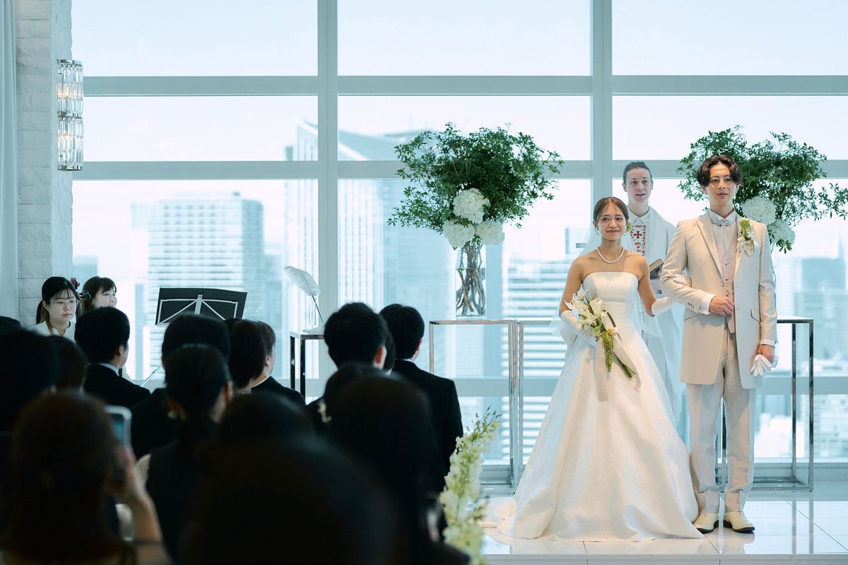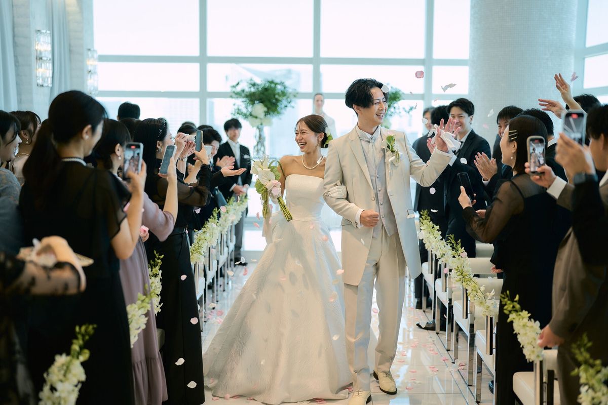 スタッフの方々の意識やホスピタリティも高く、挙式の流れもスムーズ。写真撮影で少し押した場面もありましたが、進行が滞ることなく安心できました。東京らしさがぎゅっと詰まった会場で誓いを立てられたことに、心から感動しました。